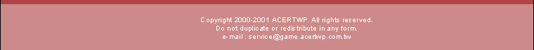 (4)獎項介紹 得獎名單前100名,可於8/8日統一獲得價值3000金幣的GUESS勳章一枚。 排行榜前三名還可以個別得到三萬、二萬、一萬的GUESS等值商品兌換券(限2002/12/31前消費完畢 另外比賽期間,參加名單中遊戲時間最長的前30名, 可於本次賽後另外獨得GUESS粉嫩皮夾乙只(市價 NT:1350)。