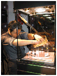 | 記者會要開始了,工作人員小心把百萬金皇冠及權仗放入展示櫃中。 |
