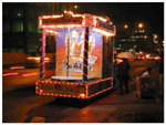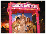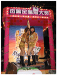 在"俗擱有力"的廣播下..金光閃閃的麻將電子花車準備起動囉!