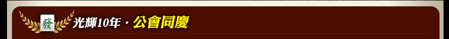 感謝會長會員死忠支持努力不懈,523~541連續十期參與公會戰且十期皆符合會戰得獎資格之公會,可無條件獲得戲谷麻將十周年紀念勳章,戲谷為您獻上最崇高的謝意!